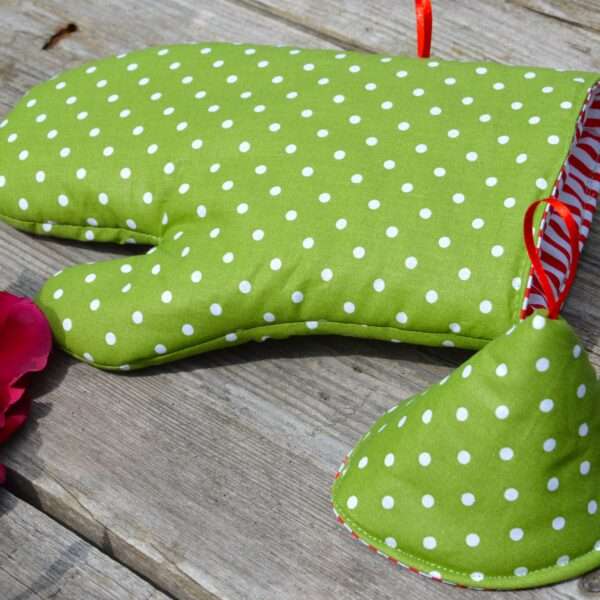 Ezeket a kesztyűket én készítem, ráadásul dupla vliz, vagyis dupla töltőanyag van bennük. Még véletlenül sem fordulhat elő, hogy a háziasszony keze megég a konyhában.