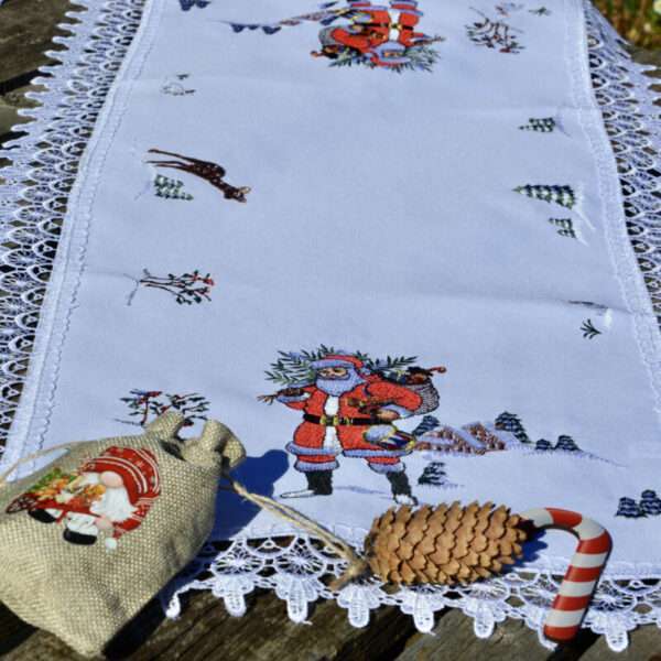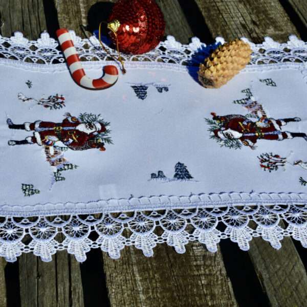 Mikulásos terítő – 90×40 cm csipkés szélű