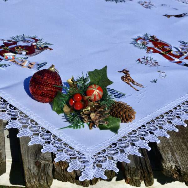 A finom csipkeszegély és az aprólékos hímzés igazi klasszikus karácsonyi hangulatot teremt – tökéletes választás, ha szeretnéd, hogy otthonod már a Mikulás érkezésekor ünnepi díszbe öltözzön. 🎁
