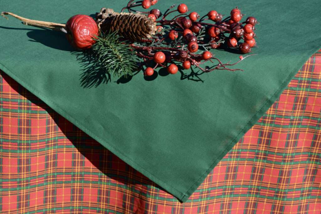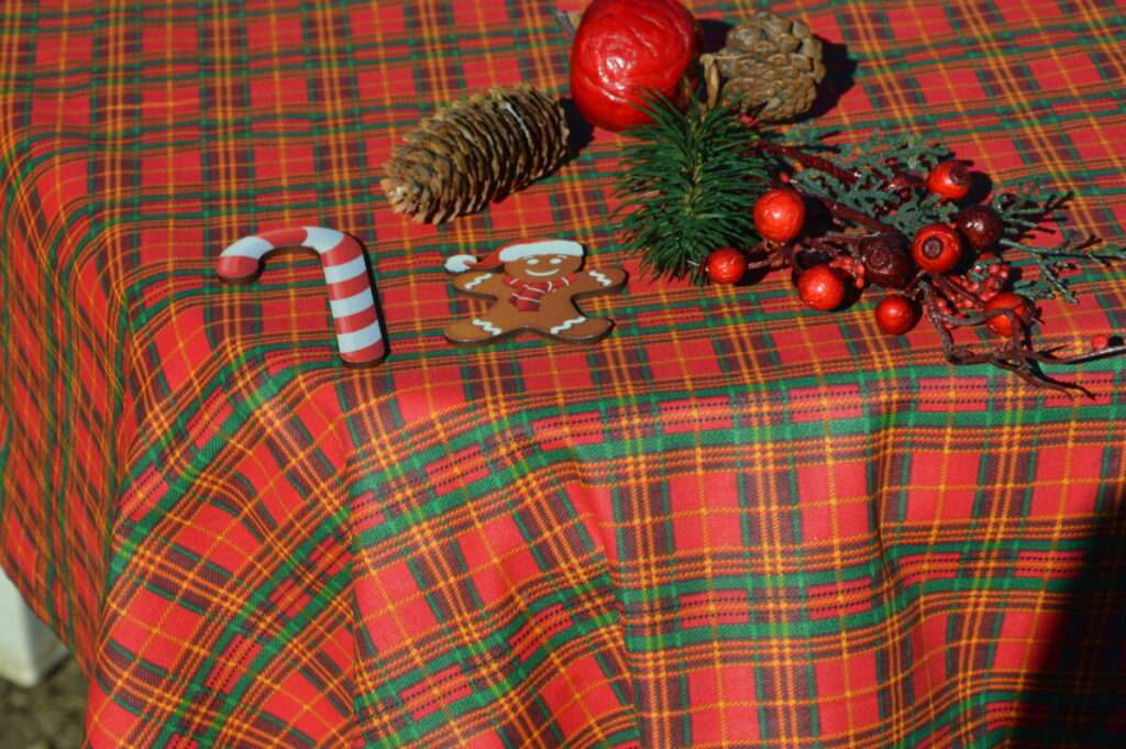Skótkockás karácsonyi abrosz – piros zöld színvilággal