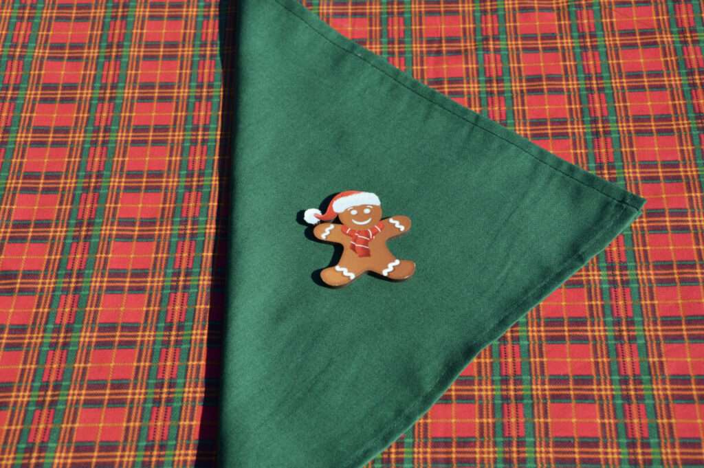 Skótkockás karácsonyi asztalterítő – zöld középpel