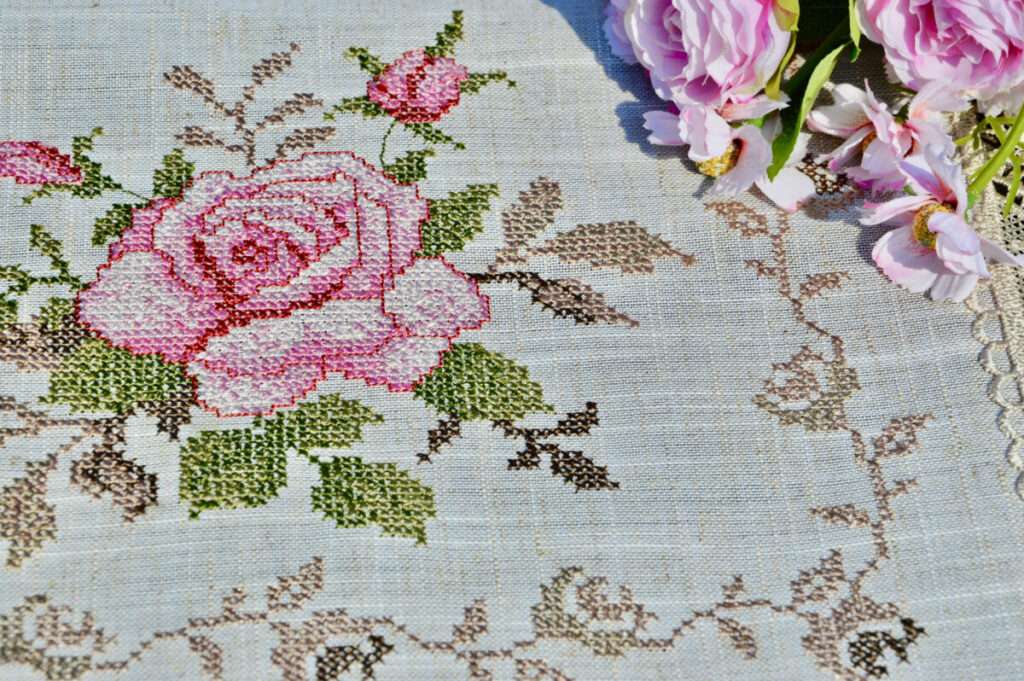 Hímzett kis terítő – Emily rózsái 45×30 cm